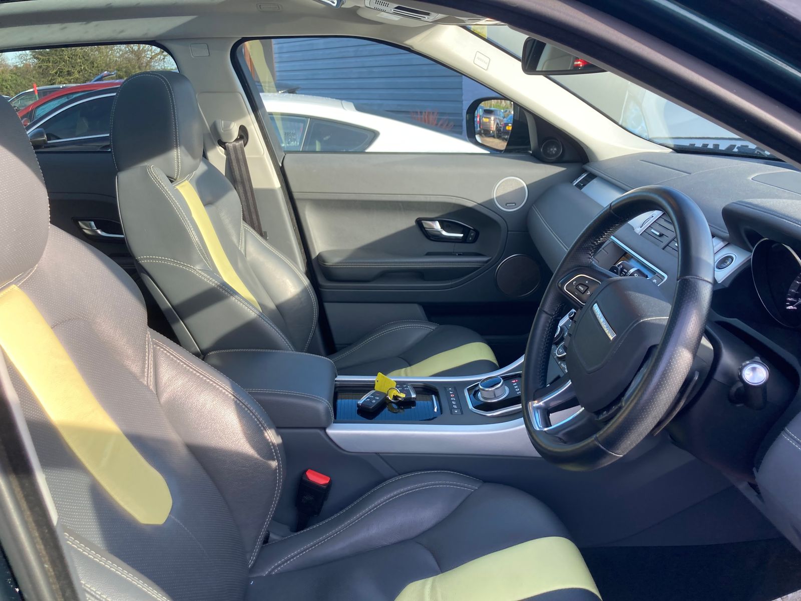 OUTSTANDING D-LUX EVOQUE - A STUNNING UNIQUE COLOUR COMBINATION - SUPPLIED DIRECT WITH TWO KEYS, JANUARY 2027 MOT TEST - PLUS FULL SERVICE HISTORY - 12 YEARS LAST OWNER - LAST SERVICED @ 112000 IN HOUSE - ALL FOUR SHOCK ABSORBERS JUST REPLACED FOR MOT TEST - 10 Speaker 380W Meridian Surround Sound System, 5in TFT Driver Information Centre, Full Panoramic Sunroof, 8in High Resolution Touch Screen, Auxiliary Power Sockets - front-rear and load space, Subwoofer, 20in Alloy Sport In Sparkle Silver (All matching Pirelli Premium Tyres) - Door Mirrors - Electrically Adjustable - Heated and Power Folding with Memory Function, Dynamic Exhaust, Four electric windows with one touch opening, Front Fog Lights, Global opening for windows - windows open via remote key, Headlight Power Wash, Xenon Headlamps with LED Signature, Dynamic Side Sills, Electric drivers and passenger seat adjustment, Heated Front Seats, Illuminated tread plates, Illumination - Front Header with delay Theatre dimming + Map lights - Interior Mood Lighting, Leather Gear Knob - Light Pipe with Controllable Colour and Intensity x2 - LED - Cruise Control, Parking Aid - Front + Parking Aid - Rear, Parking Aid - Rear View Camera, TMC - Dynamic route guidance, Terrain Response, Voice Control - Say What You See - MASSIVE SPEC -