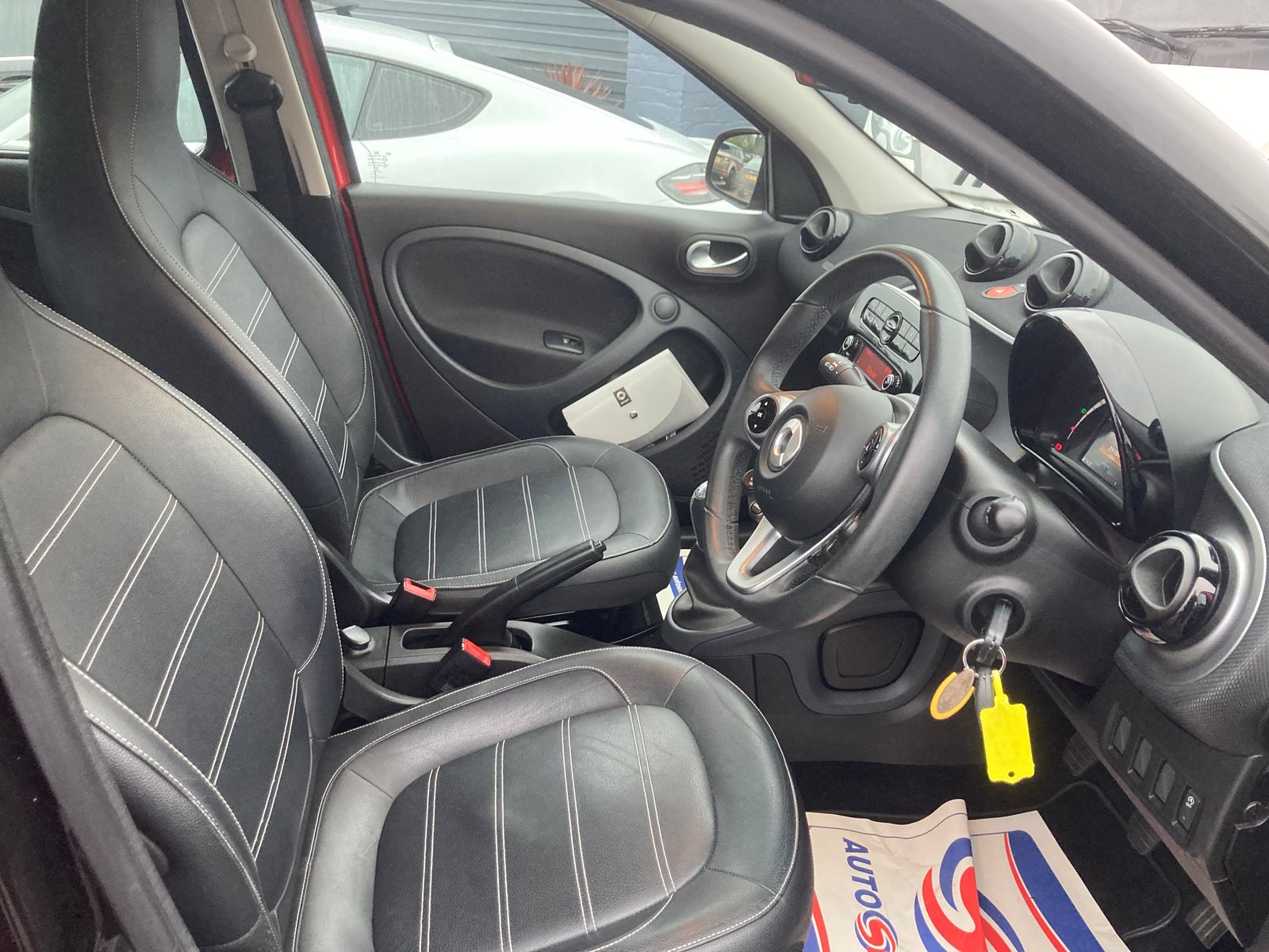 FULL YEARS MOT TEST - TWO KEYS - FULL LEATHER - TWIN SUNROOFS - OUTSTANDING LOW MILEAGE SMART CAR !! ONLY 29321 MILES FROM NEW - FULL SMART ( MERCEDES BENZ )SERVICE HISTORY - JANUARY 2027 MOT TEST - ONLY £20 PER YEAR - GROUP 2 INSURANCE - LAST HAD FULL IN HOUSE SERVICE - LOWEST MILEAGE EXAMPLE IN MARKET TODAY !! - 15in Alloy Wheels - 5-Twin-Spoke Painted in Black with a High-Sheen Finish, Full Black Leather, LED Daytime Running Lights, Painted Door Handles, Two Panoramic Roofs with Sun Protection, Rear Spoiler, 85 Degree Wide Opening Rear Doors, Automatic Climate Control, Central Locking with Convenience Closing Features, Centre Console with Pull-Out Tray and Double Cup Holder, Heated Seats for Driver and Front Passenger, Steering Wheel - 3- Spoke Multi-Function - Leather, Crosswind Assist, Cruise Control with Speedtronic Variable Speed Limiter, Solid Roof in Tridion Colour, Electric Windows, Smart Audio-System - OUTSTANDING 4 DOOR SMART CAR !!!!